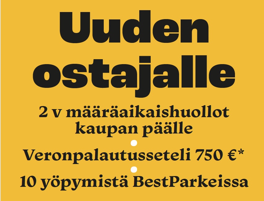 2 vuoden huollot kaupan päälle – määräaikaishuollot huolto-ohjelman mukaisesti.